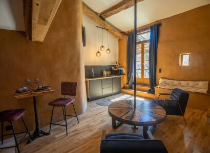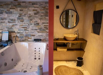 Relaxez-vous dans votre spa privatif, profitez de la chaleur enveloppante du hammam, et laissez-vous séduire par une nuit d’exception dans un lit King Size.